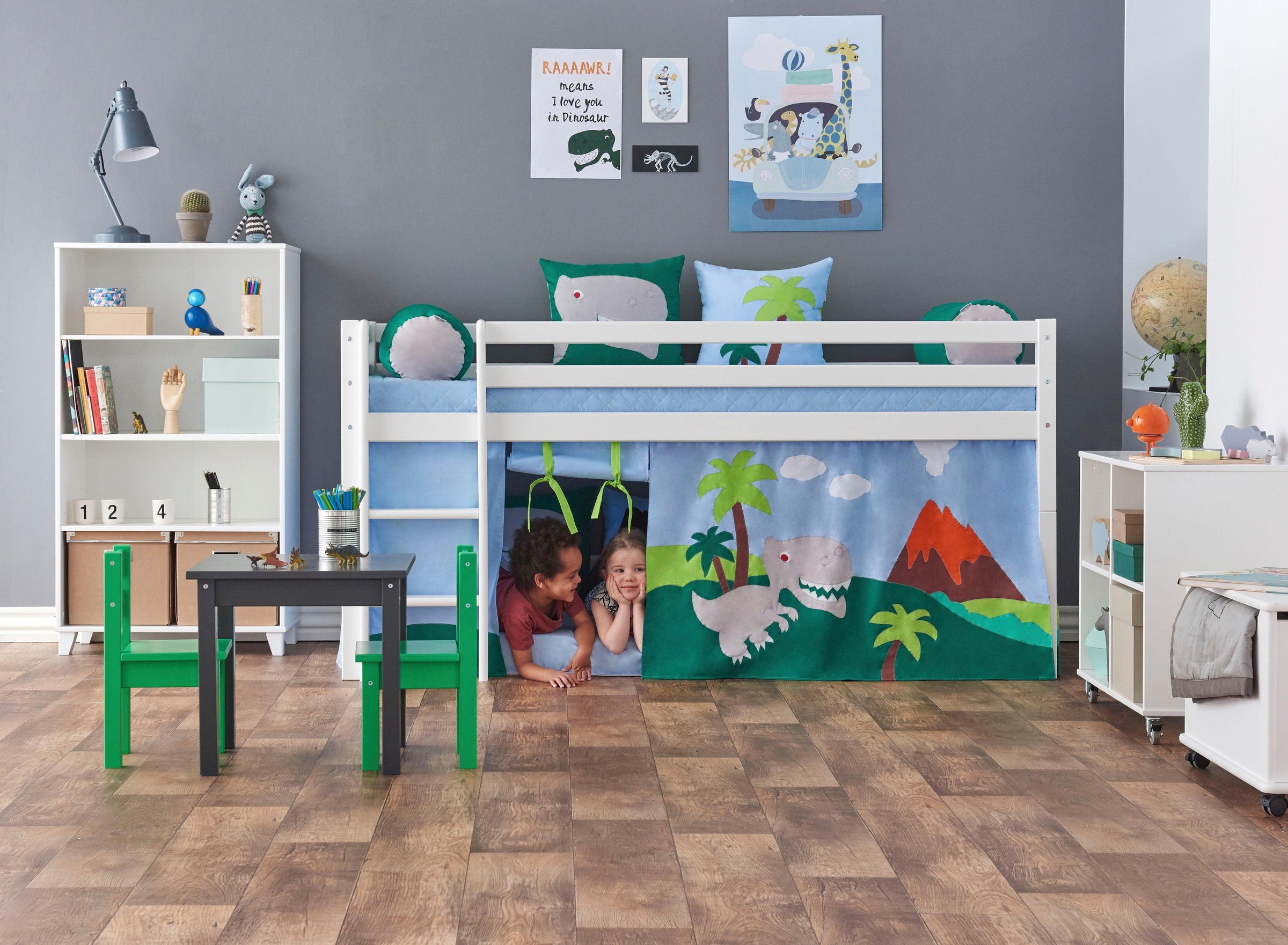 Relita vorhangset mit turm spielbetten, hellblau kinder. Hochbett oder doch lieber ein etagebett? Und spätestens durch das vorhangset mit dem tollen fußballmotiv werden sie ihre kleinen wahrscheinlich so schnell nicht mehr aus dem bett heraus bekommen. Hochbett mit leiter, rutsche, turmgestell und rollrost buche massiv, weiß lackiert liegefläche ca. Hochbett betttunnel turm vorhang fußball.